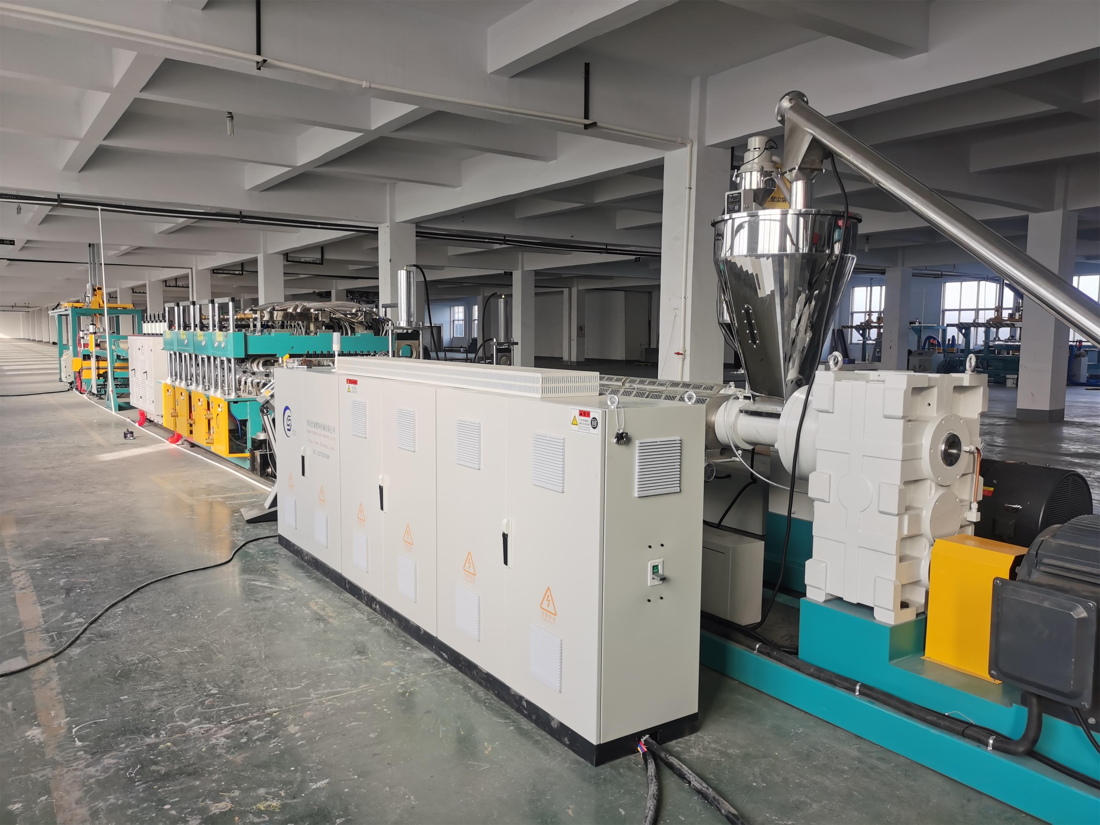 中空建筑模板設(shè)備由自動上料進(jìn)入高速混料、再自動上料到雙螺桿擠出機(jī)、由大板模具結(jié)構(gòu)出料進(jìn)行四節(jié)定型模定型、排輥托冷裝置、裁邊裝置、牽引機(jī)、自動切割機(jī)、排輥輸送機(jī)等組成。機(jī)組結(jié)構(gòu)緊湊,性能優(yōu)越。螺桿、螺筒經(jīng)優(yōu)化設(shè)計,并采用高性能合金鋼加工,使整機(jī)具有塑化均勻,擠出量穩(wěn)定,產(chǎn)量高,壽長等優(yōu)點(diǎn)。主機(jī)螺筒采用鑄鋁加熱器加溫,風(fēng)冷卻,精密電控儀表控制溫度。精密的定型壓光裝置,通過其良好的調(diào)整功能使板材定型優(yōu)良。切割部分采用定長切割裝置,保證板材長度。板材擠出設(shè)備有異向平行雙螺桿擠出機(jī),板材模具,真空定型和八輪牽引等輔機(jī)部分組成,應(yīng)用前景廣闊,廣泛應(yīng)用建筑材料。具體細(xì)節(jié)詳情請來電咨詢青島仕誠塑料機(jī)械有限公司,我們將根據(jù)客人實際要求量身定制方案。到接廠方指導(dǎo)安裝、生產(chǎn)、調(diào)試及免費(fèi)提供技術(shù)配方一條龍服務(wù)。