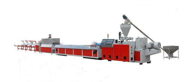 該機(jī)組是生產(chǎn)PVC塑料異型材的生產(chǎn)設(shè)施,主要生產(chǎn)門窗系列異型材、板材、片材、微發(fā)泡異型材、微發(fā)泡裝飾板材。我公司引進(jìn)吸收國外技術(shù)而研制的大型塑料門窗異型材生產(chǎn)線,配套以錐形雙螺桿擠出機(jī),具有自動化程度高,工作性能平穩(wěn),產(chǎn)量大,效率高等優(yōu)點(diǎn)。